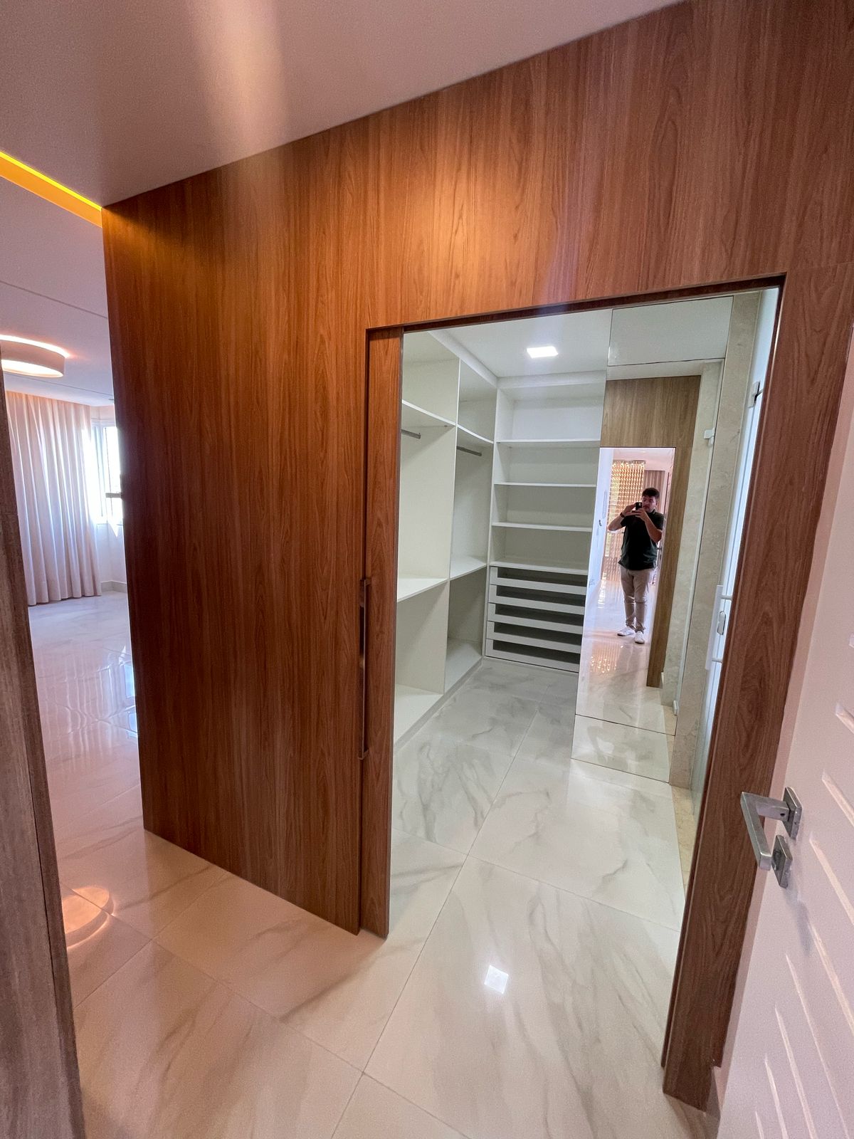 Encontra-se em um condomínio protegido por muros.