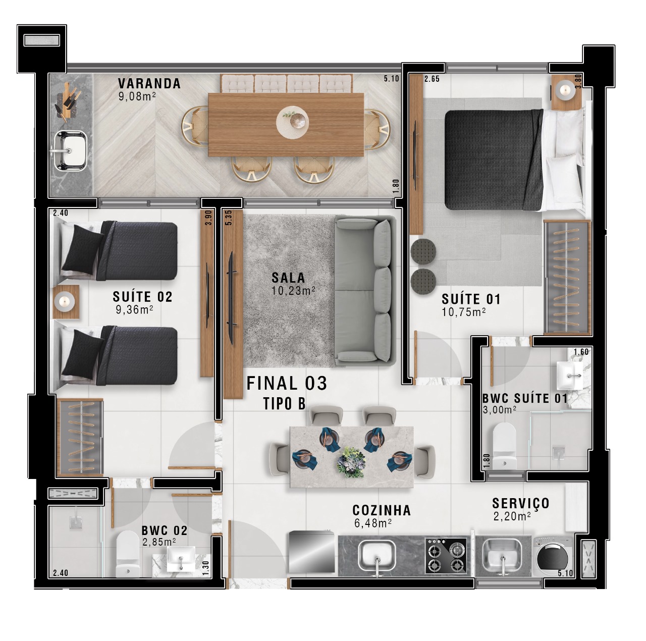 O apartamento está localizado no bairro Capim Macio com 61 metros quadrados com 2 quartos sendo 1 suite e 2 banheiros