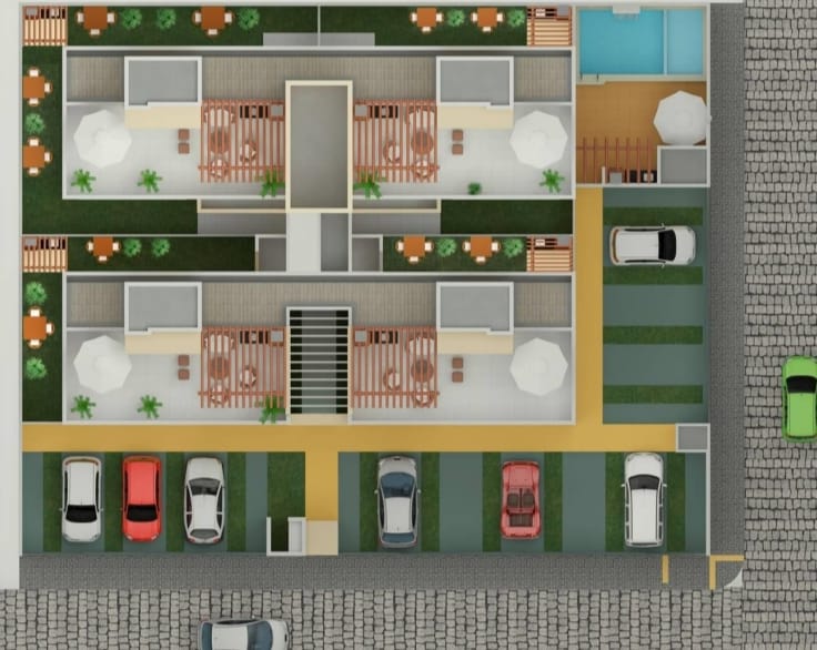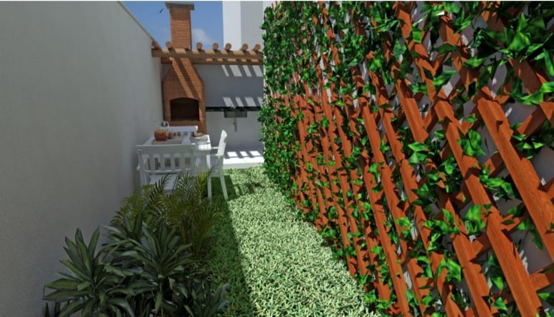 * Jardino- com sala de estar e jantar, cozinha, área de serviço, 2 quartos, sendo uma suíte, banheiro social, escritório, além disso o apartamento conta com uma excelente área externa descoberta, churrasqueira privativa,1 vaga de garagem;