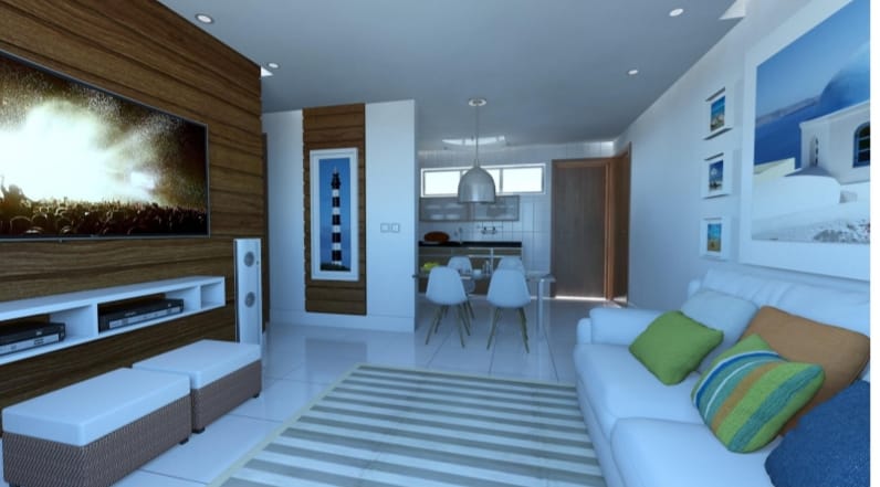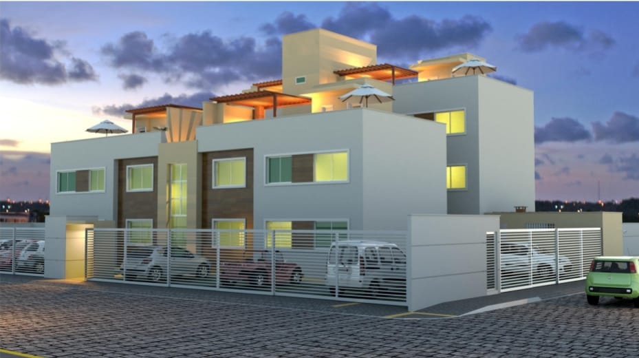* Apartamento padrão (Tipo) - com sala de estar e jantar, cozinha, área de serviço, 2 quartos, sendo uma suíte, banheiro social, escritório, 1 vaga de garagem.