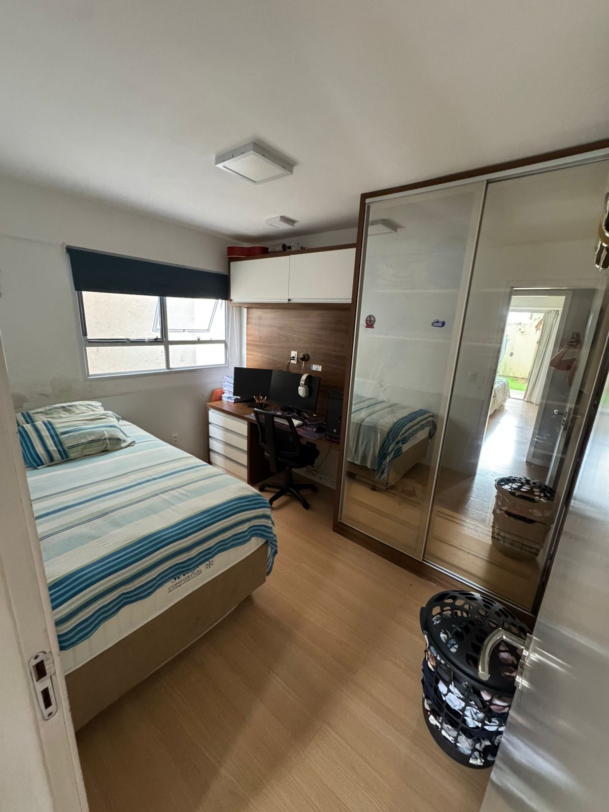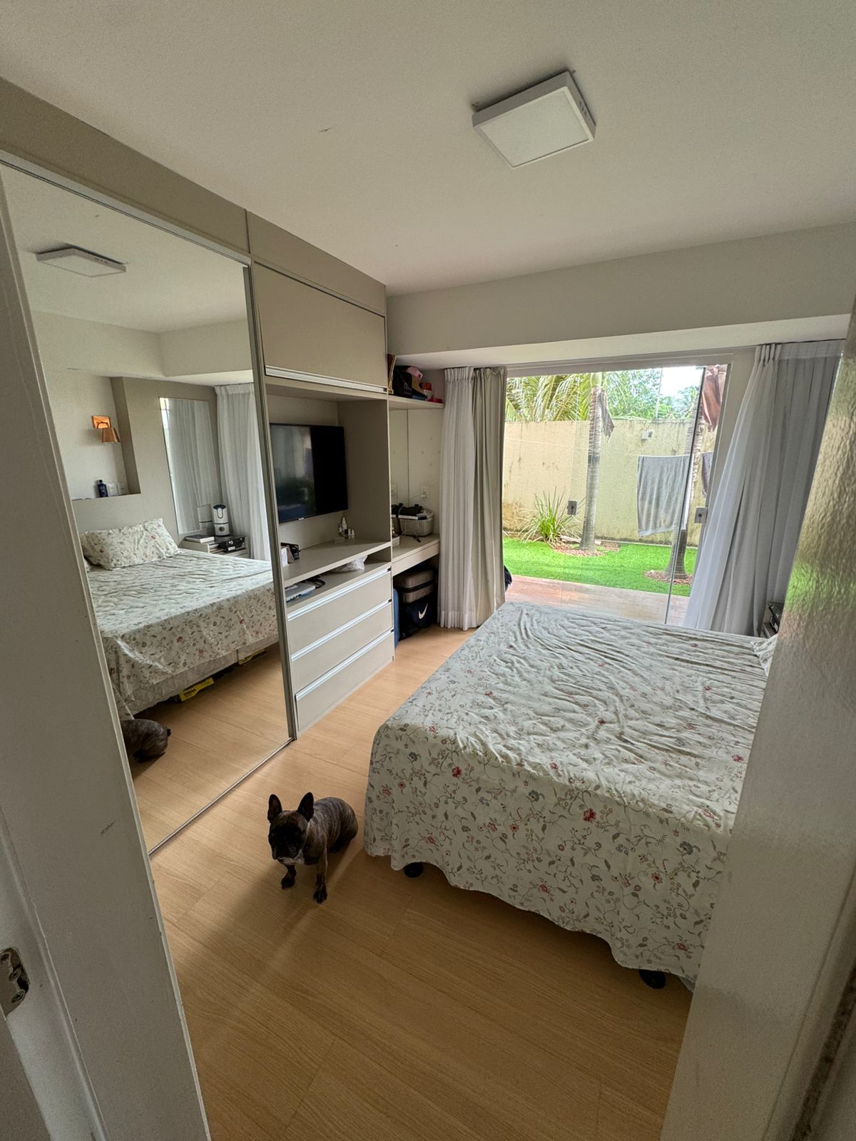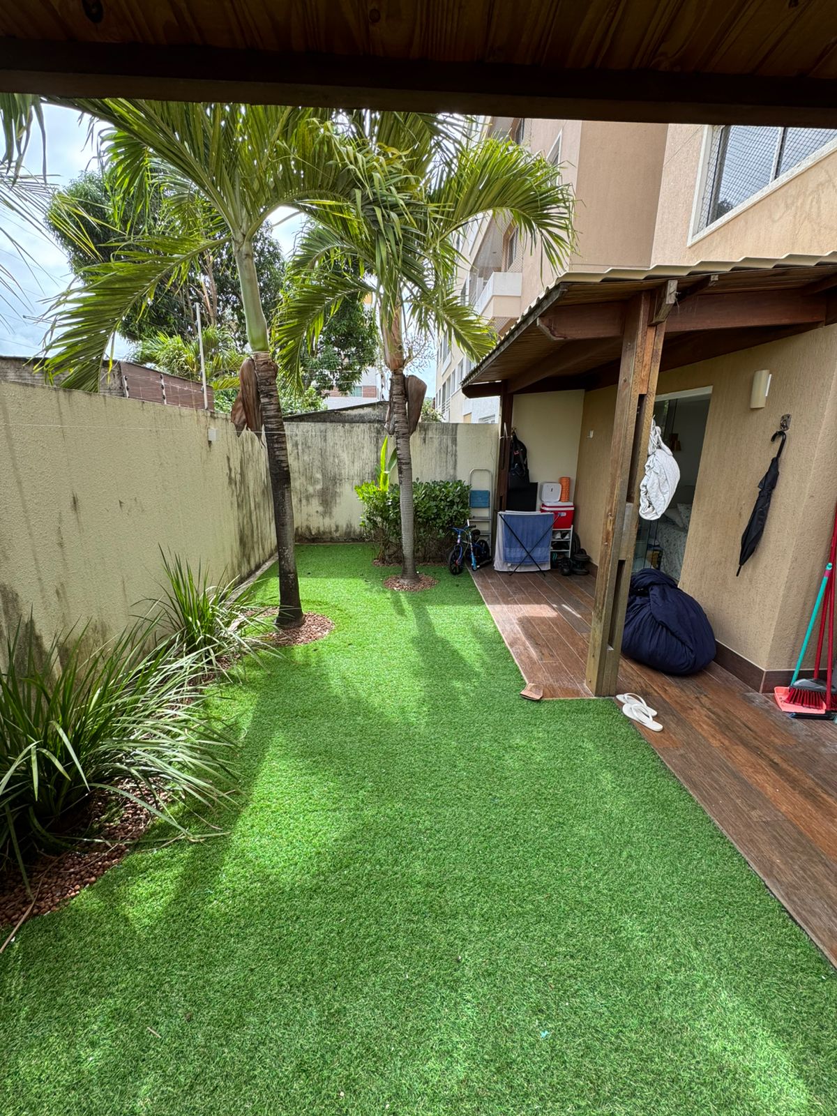 130m2, 3 quartos, sendo uma suíte, sala de estar, jantar, todo no piso laminado, móveis planejados na cozinha, banheiro e quartos climatizados, com Jardino Privativo e área Gourmet, grama sintética (Grama com proteção UV e garantia de 5 anos - executado pela Ecolix em julho de 2025).
