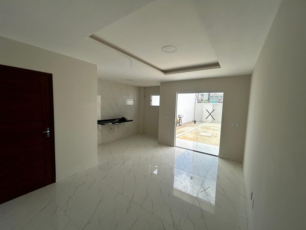 Sendo composto por duas suítes no andar superior (uma com varanda e espaço para closet), um quarto no térreo, sala e cozinha integradas, banheiro social, área de serviço, garagem para dois veículos, quintal, piso em porcelanato 72x72.